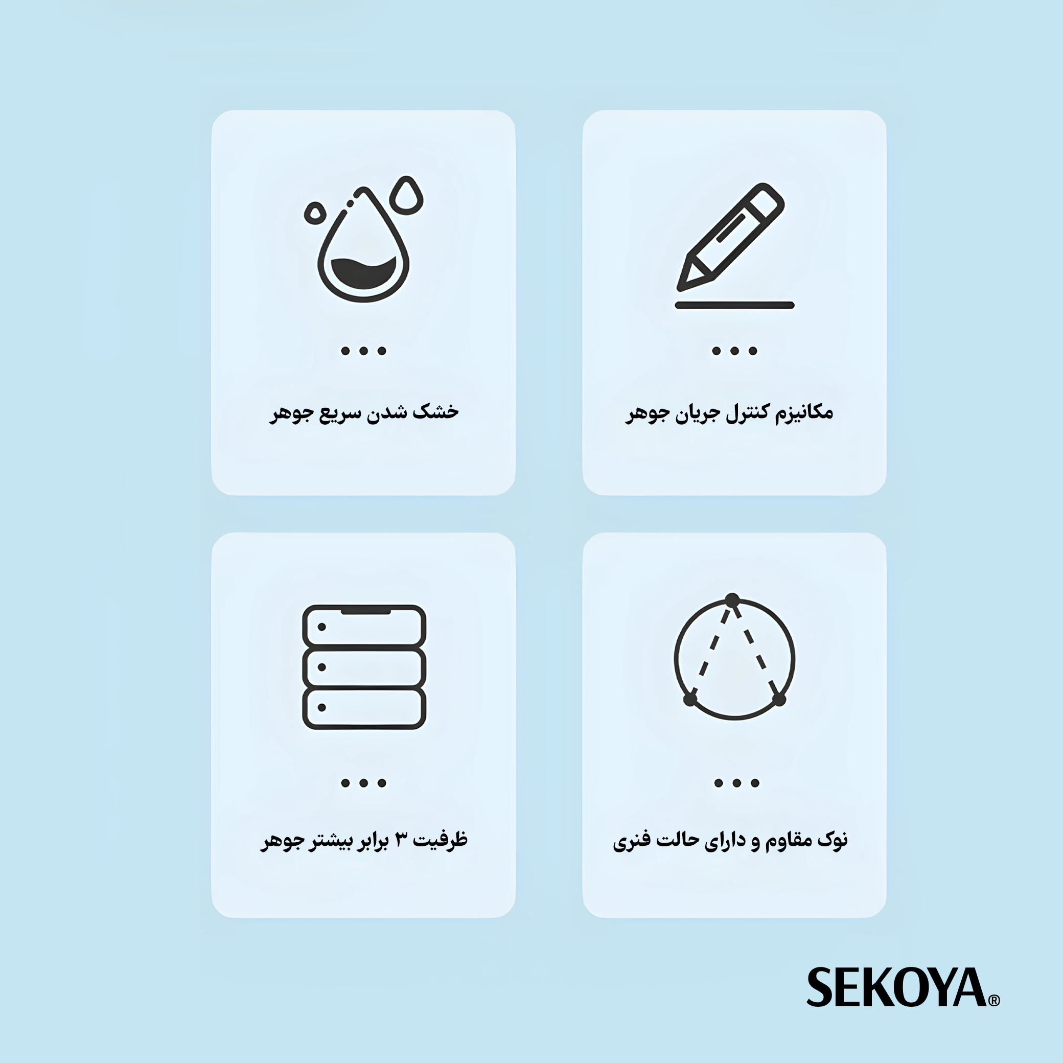 | ویژگی جوهر | خشکشدن سریع و جلوگیری از لکهگذاری |