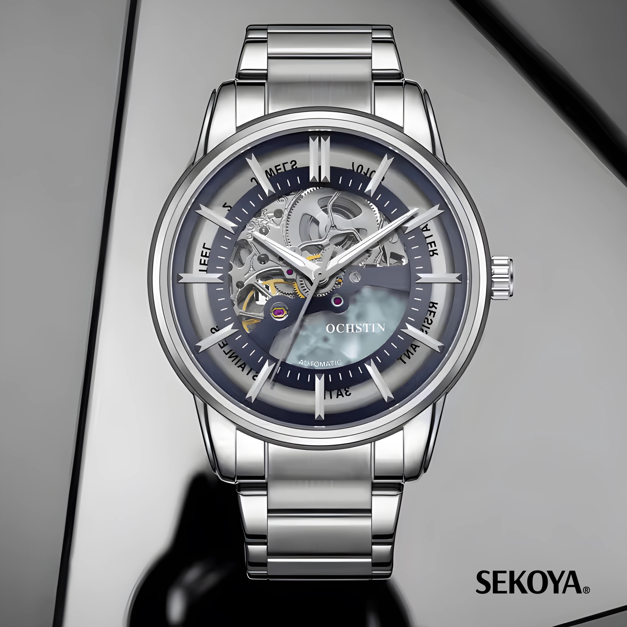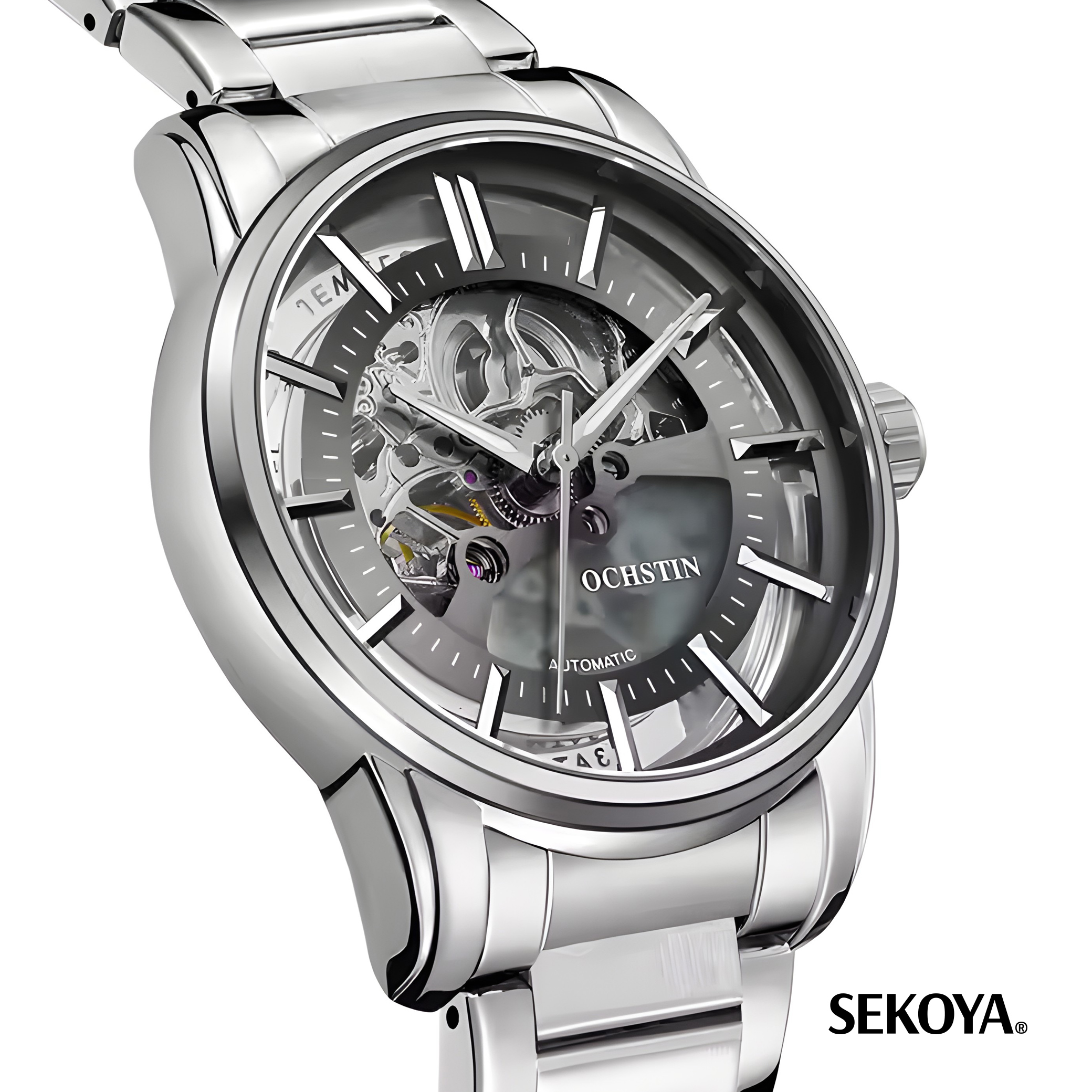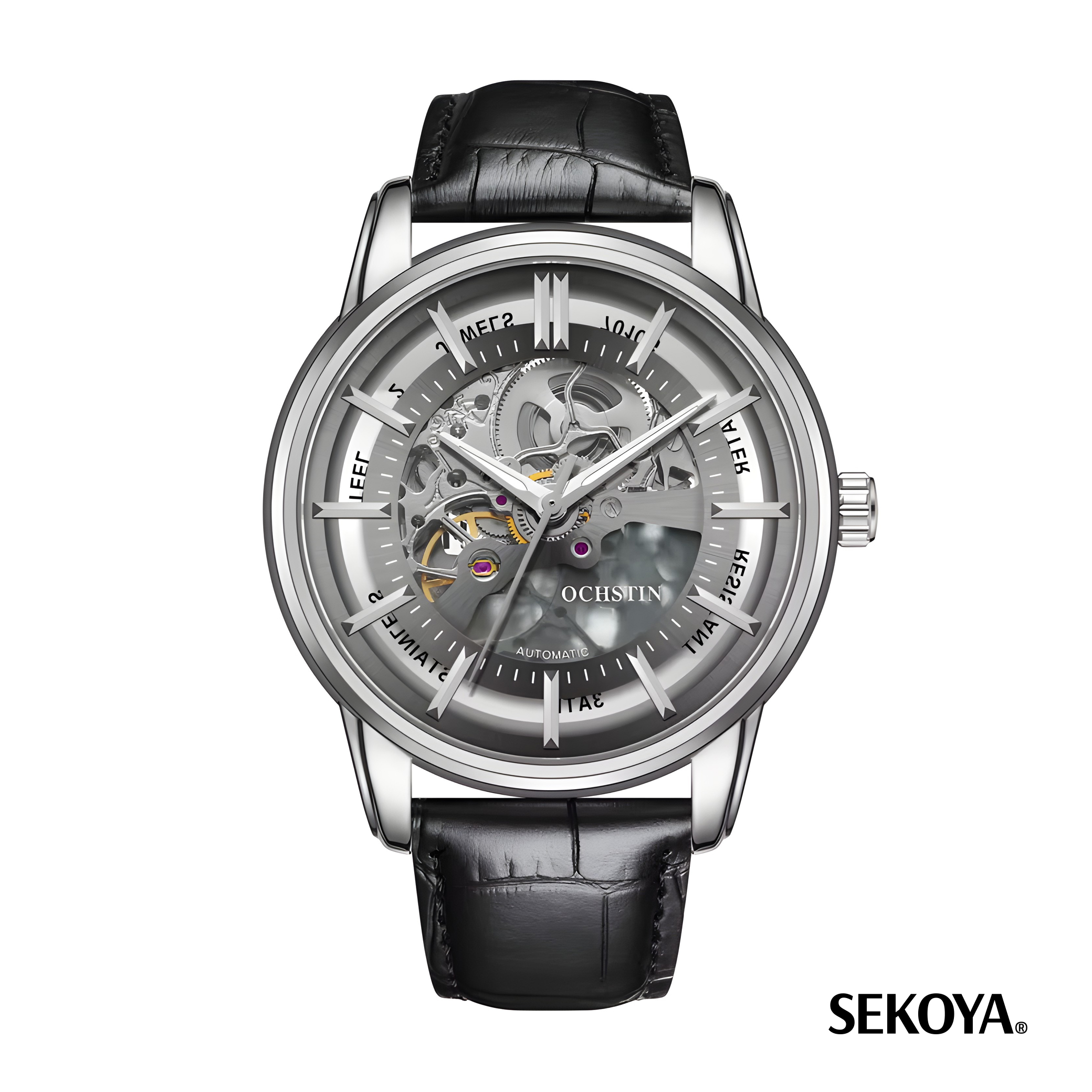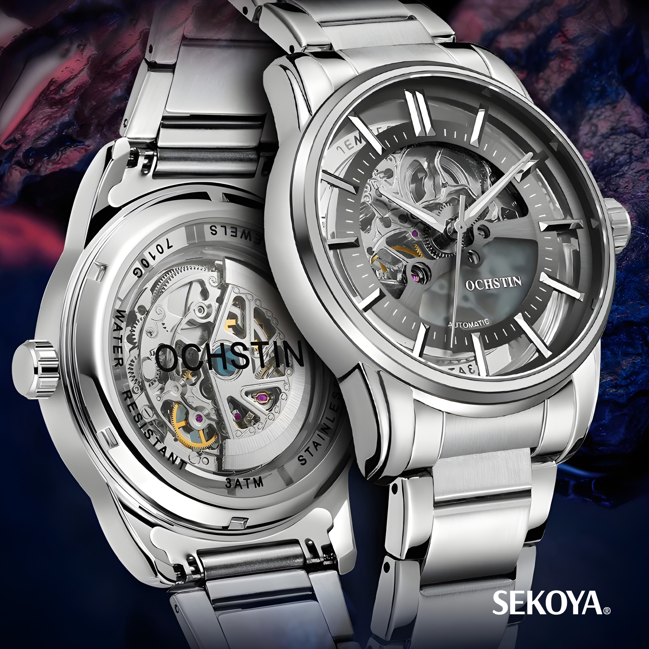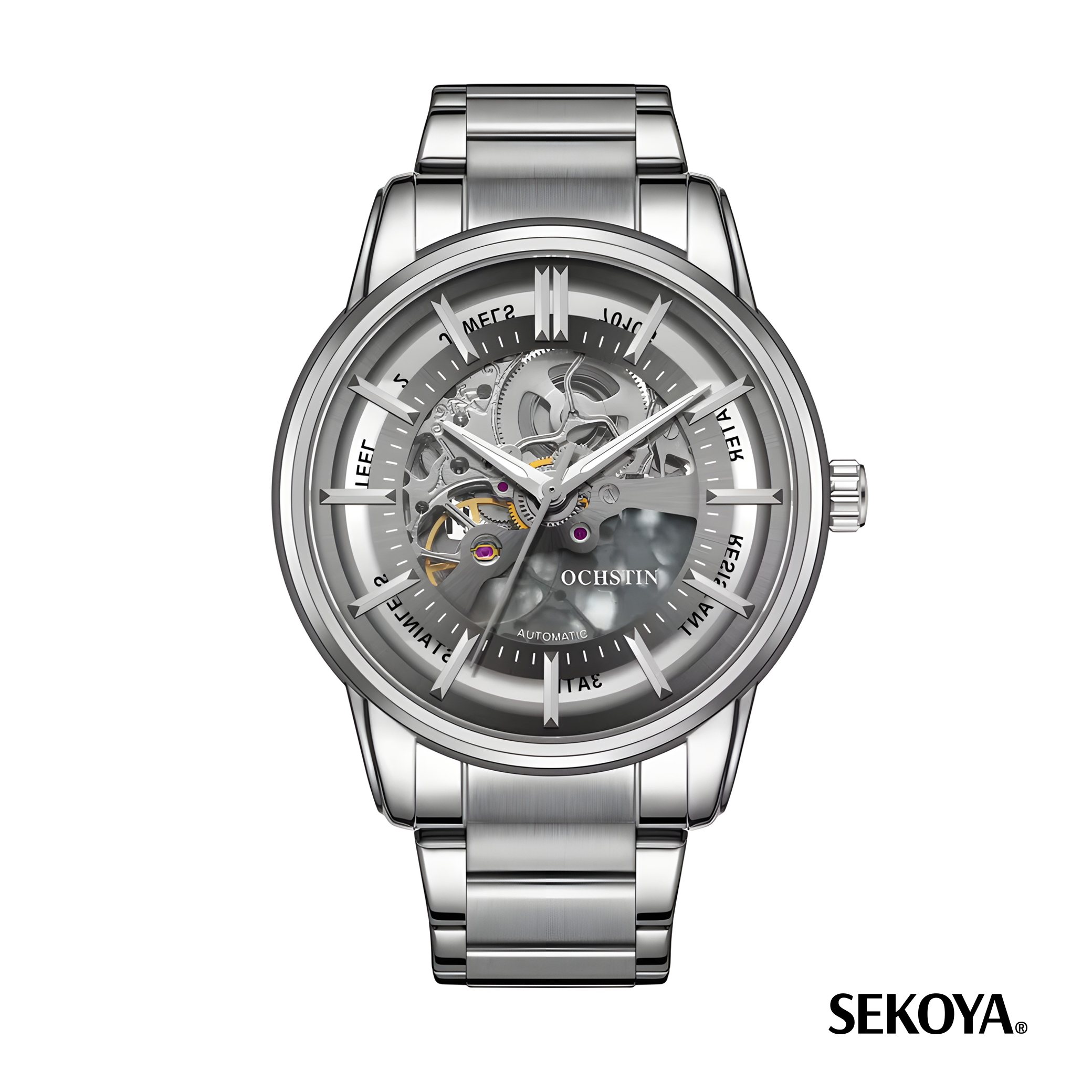 ساعت مچی اتوماتیک OCHSTIN مدل 7010، با طراحی اسکلت شفاف و بدنهای از جنس استیل ضد زنگ، ترکیبی بینظیر از هنر و مهندسی را به نمایش میگذارد. این ساعت با حرکت مکانیکی خودکار، دقت و ظرافت را در هر لحظه به ارمغان میآورد. صفحه نمایش آنالوگ با عقربههای شبتاب، امکان مشاهده زمان را در هر شرایط نوری فراهم میکند. با این ساعت، استایل لوکس و عملکرد بینقص را تجربه کنید.