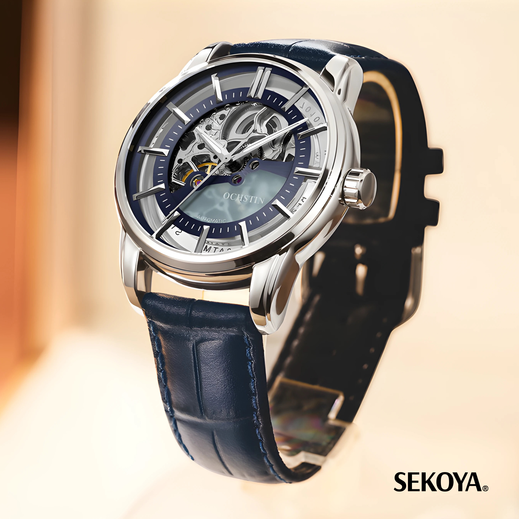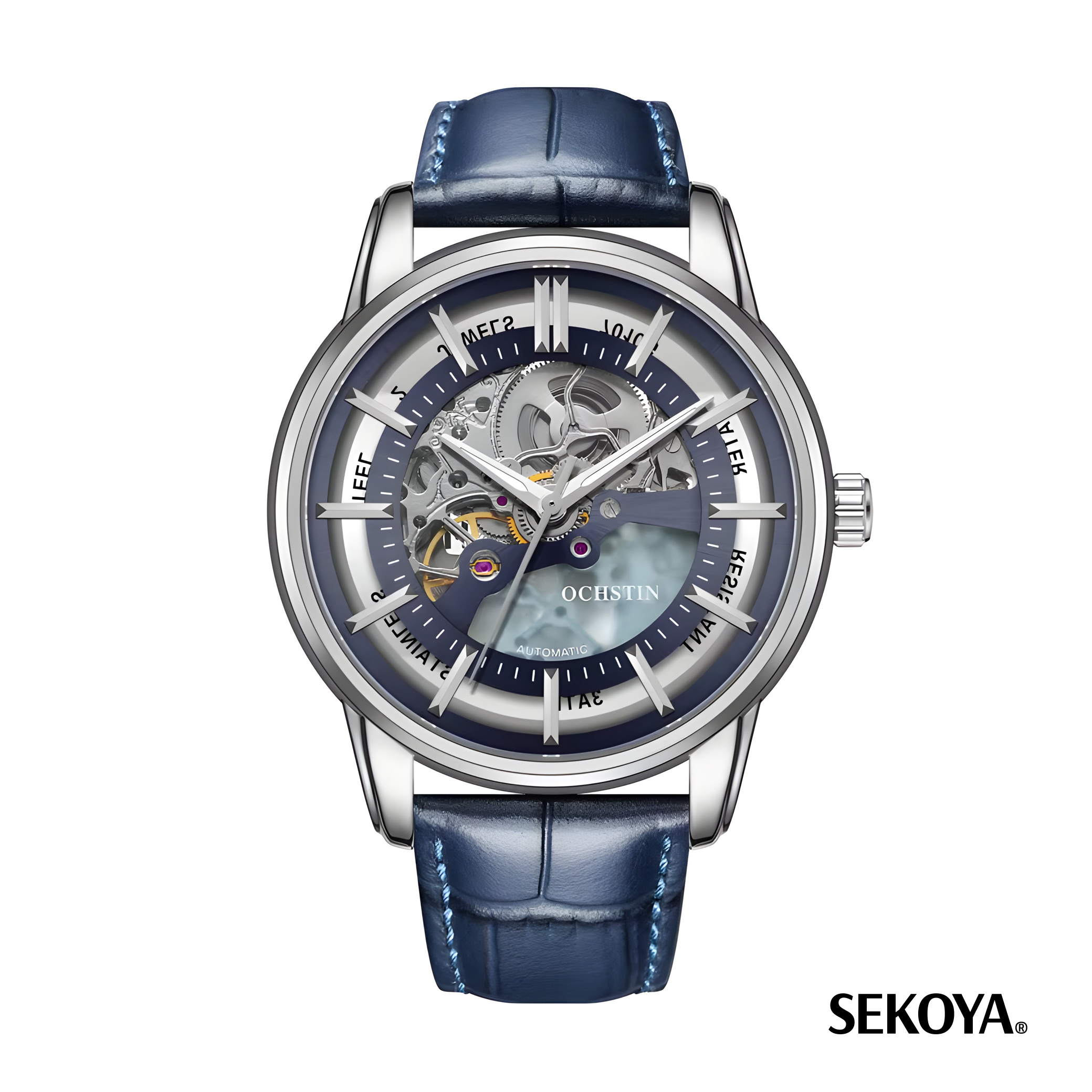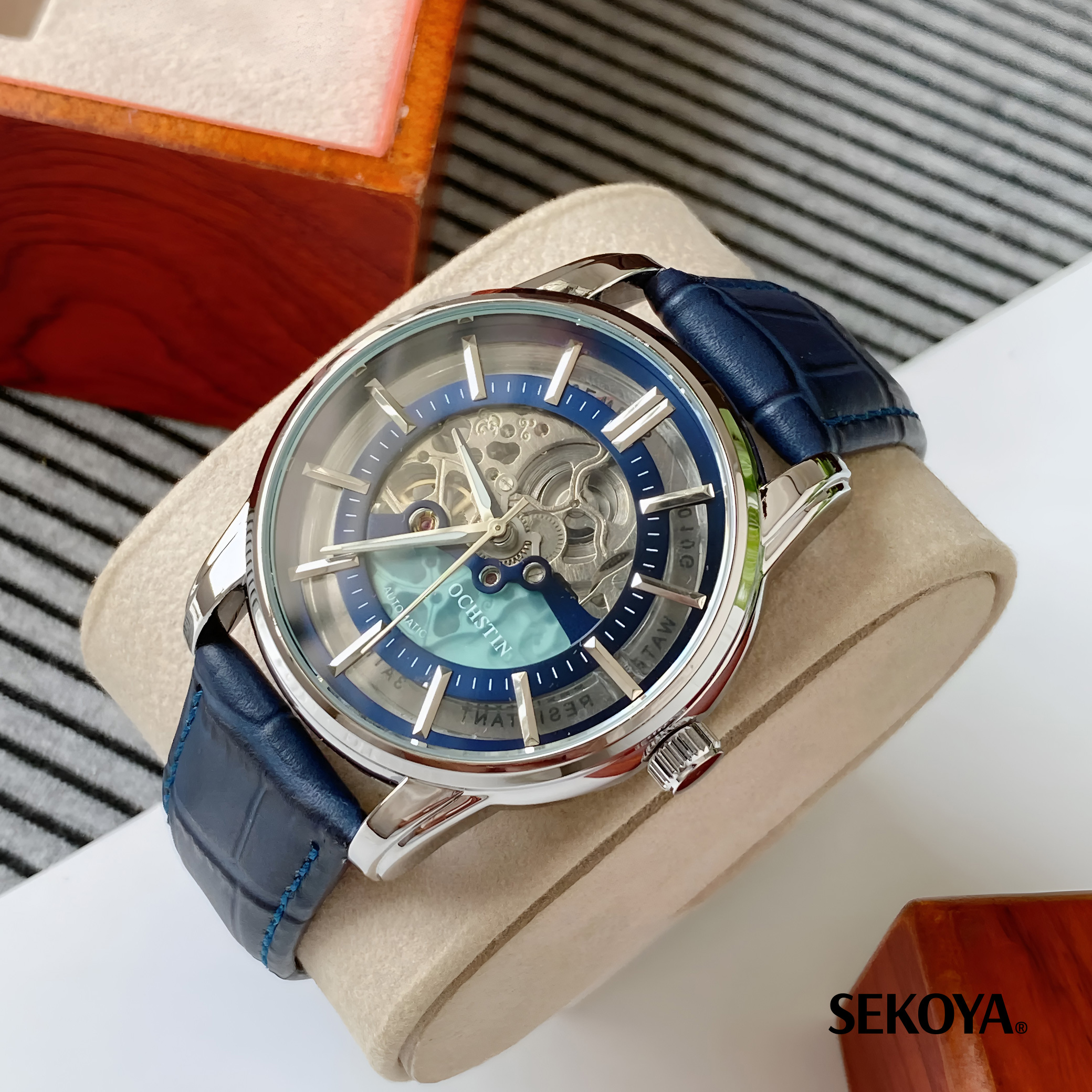 طراحی اسکلت شفاف: امکان مشاهده مکانیزم داخلی ساعت، جلوهای هنری و منحصر به فرد به آن میبخشد که توجه هر بینندهای را جلب میکند.