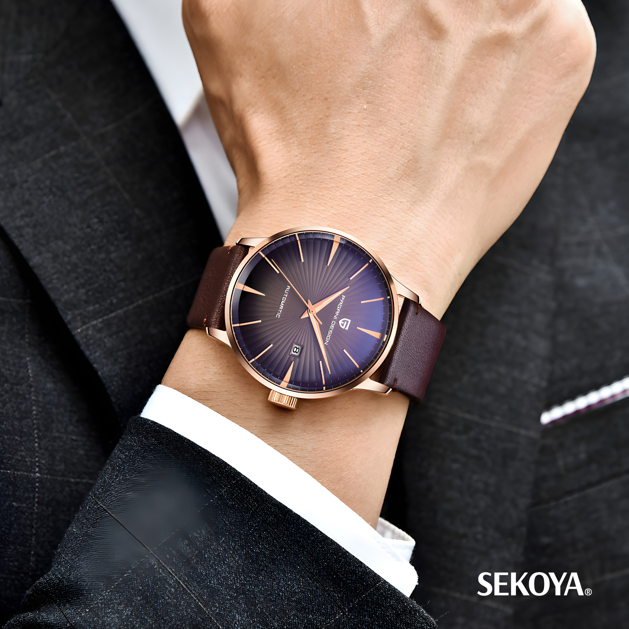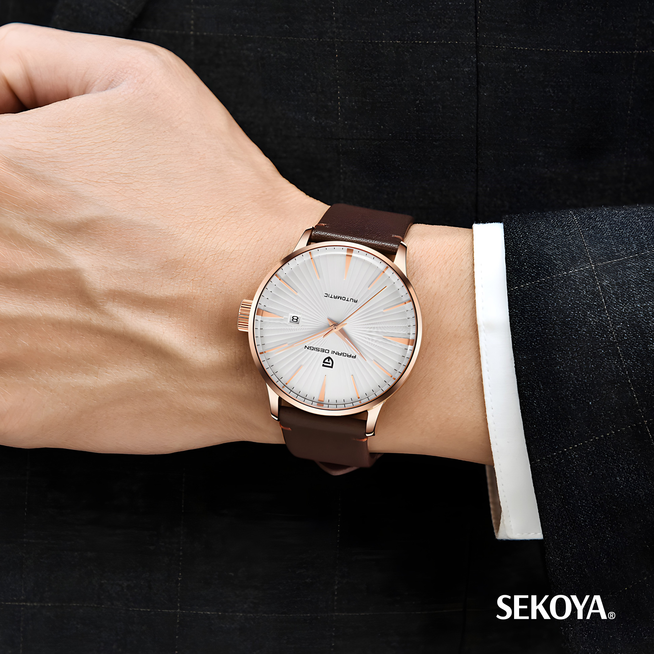 حرکت مکانیکی خودکار: مجهز به حرکت مکانیکی Seagull 2813 با ذخیره انرژی ۳۶ ساعته، نیازی به باتری ندارد و از دقت بالایی برخوردار است.