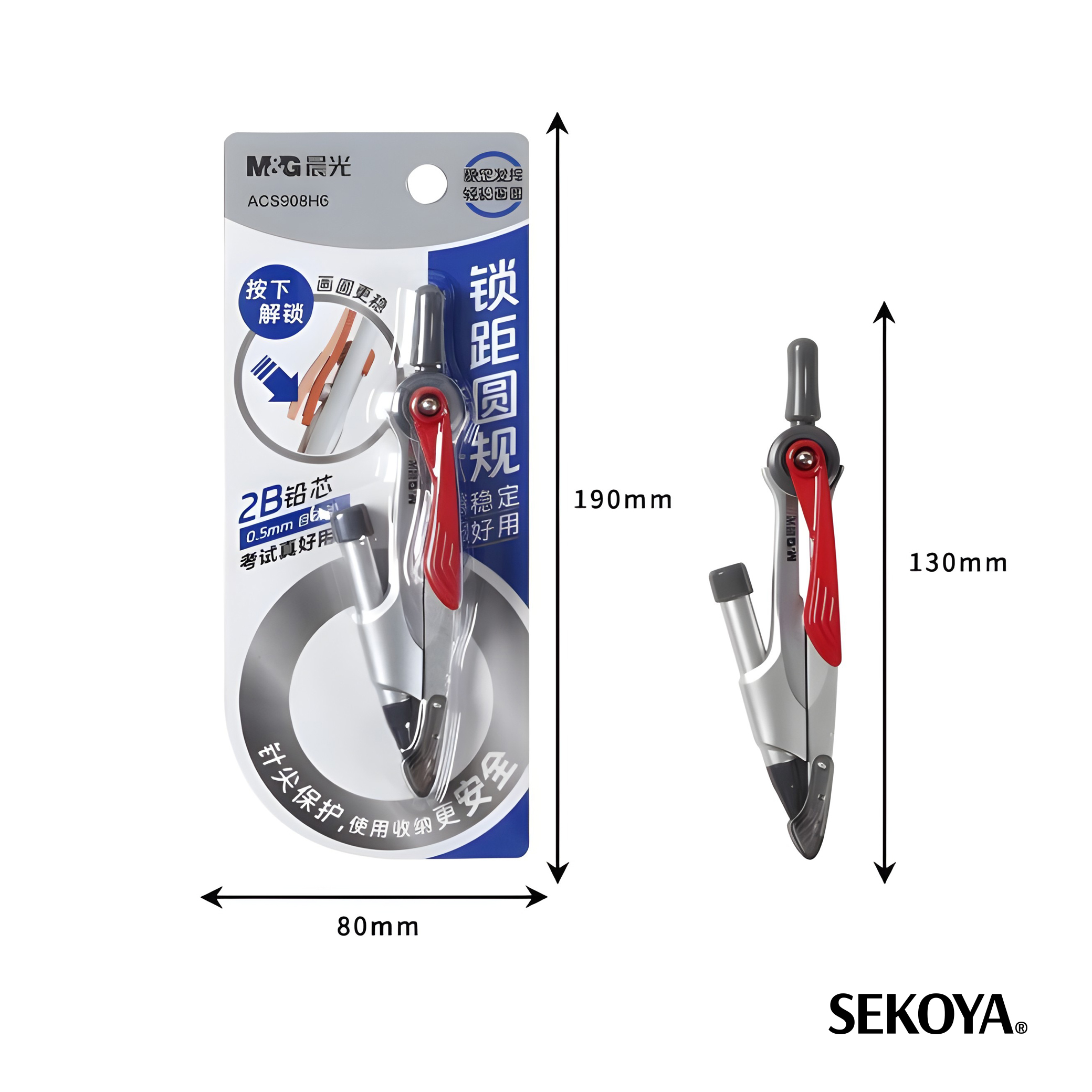 پرگار مدل ACS908H6 از برند با کیفیت M&G، ابزاری ضروری برای دانشآموزان و طراحان است که با طراحی هوشمندانه و کیفیت ساخت بالا، تجربهای بینظیر در ترسیم دایرهها و اشکال هندسی فراهم میکند.